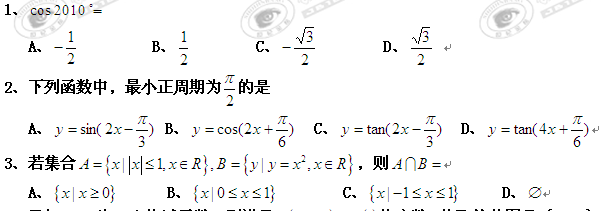 河北省冀州中学10-11学年高一上学期期末考试(数学文B)
