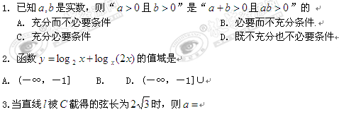 江西省樟树中学10-11学年高二上学期第四次月考(数学理)缺第4题