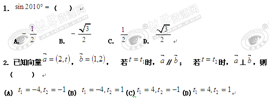黑龙江省鸡西市第一中学2011届高三上学期期末考试(数学文)