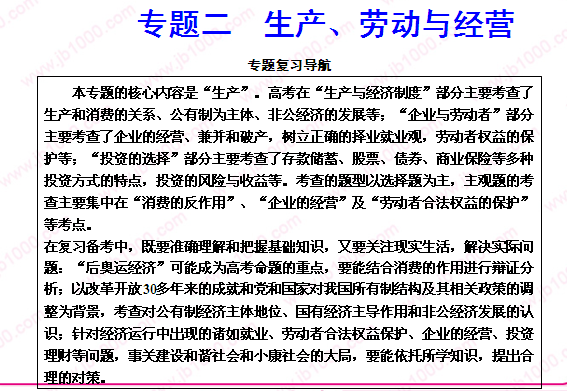政治:2011年高三二轮复习专题二《生产、劳动与经营》课件