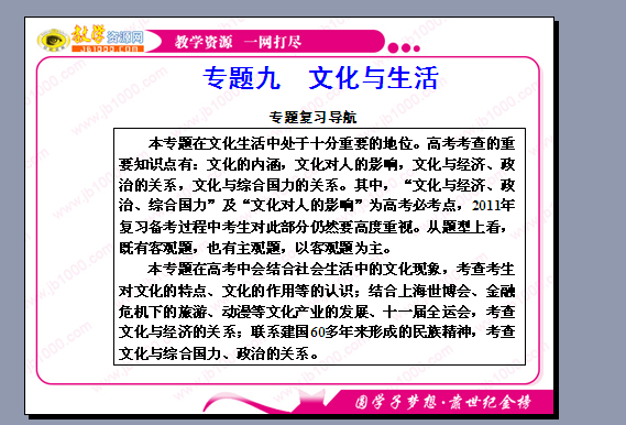 政治:2011年高三二轮复习专题九《文化与生活》课件