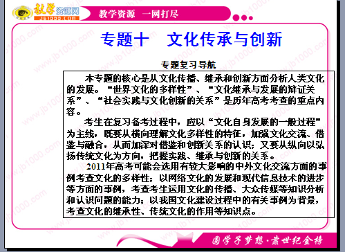 政治:2011年高三二轮复习专题十《文化传承与创新》课件