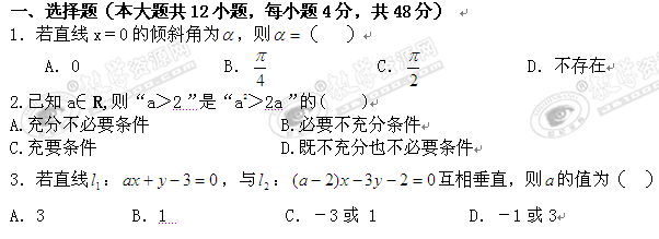 甘肃省武威六中10-11学年高二上学期期末试题(数学理)