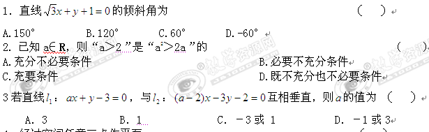 甘肃省武威六中10-11学年高二上学期期末试题(数学文)