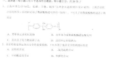 江苏省南京师大附中10-11学年高二上学期期末考试(化学)扫描版