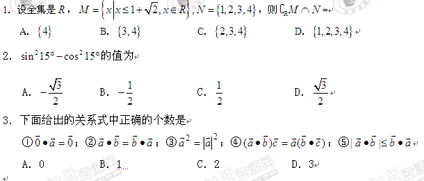 海南省海南中学10-11学年高一上学期期末考试(数学)(1班)
