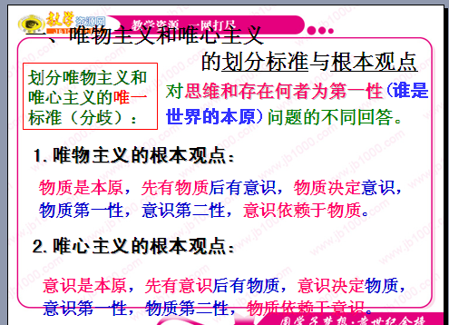 政治:1.2.2《唯物主义和唯心主义》课件(新人教必修4)