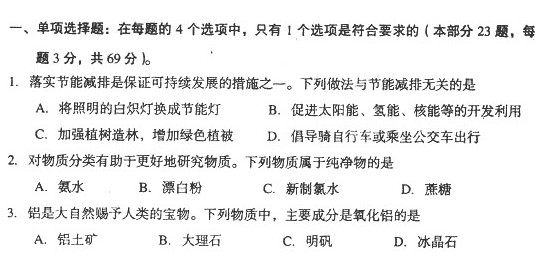 江苏省徐州市2011年高二学业水平模拟考试(化学)(扫描版)