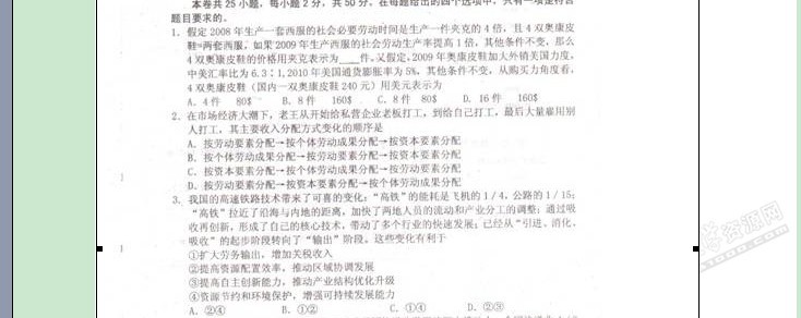 江西省赣州市2011届高三上学期期末考试试题(政治)扫描版