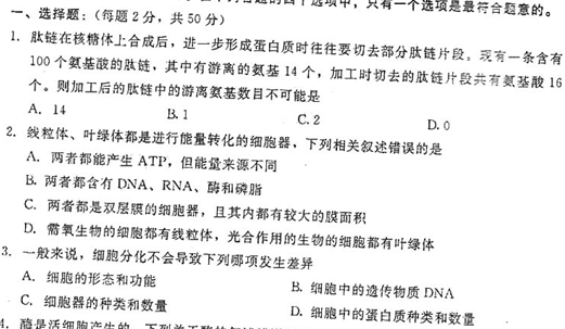 四川省乐山市高中10-11学年高二上学期期末考试(生物)扫描版