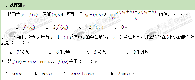 河北省魏县一中10-11学年高二3月份月考试题(数学)缺解答题答案