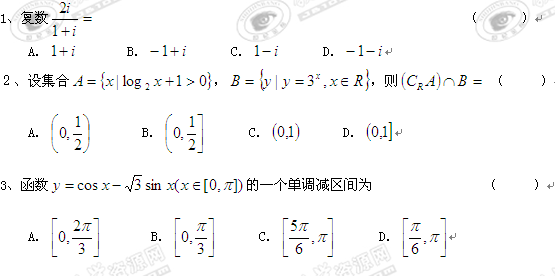 安徽省阜阳市2011届高三教学质量检测试题(数学理)