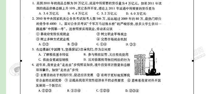 安徽省蚌埠市2011届高三第一次教学质检(政治)扫描版
