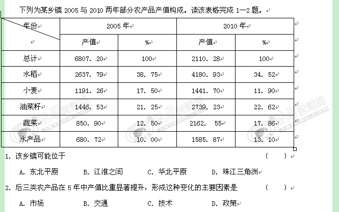 陕西省西安市2022届高三下学期第七次模拟考试试题(文综 扫描版 无答案)