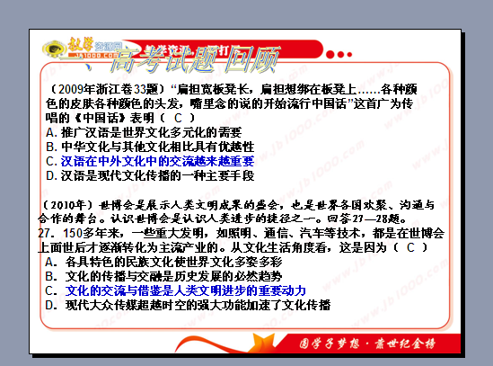 浙江省金衢绍舟宁台六市2011届高考政治研讨资料:文化生活专题 课件