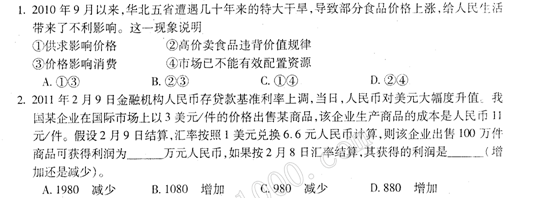 安徽省蚌埠2011届高三第二次模拟考试(文综)(扫描版)