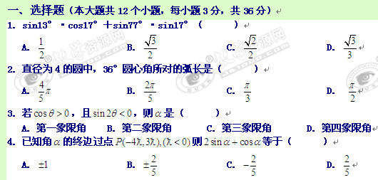 四川省什邡中学10-11学年高一下学期第一次月考(数学)缺答案