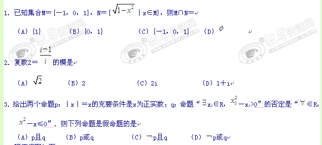 河南省五市高中2011届高三毕业班第一次联考(数学理)