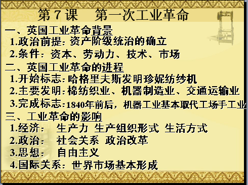 历史:2.7《第一次工业革命》课件(人教版必修2)—湖南师大附中内部资料