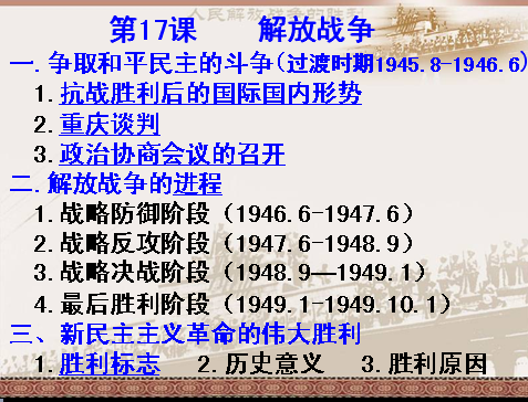 历史:4.17《解放战争》课件(人教版必修1)—湖南师大附中内部资料