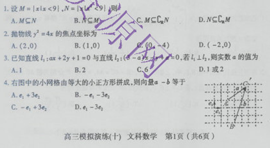 河北省石家庄市2011届高三第一次模拟考试(数学文)扫描版