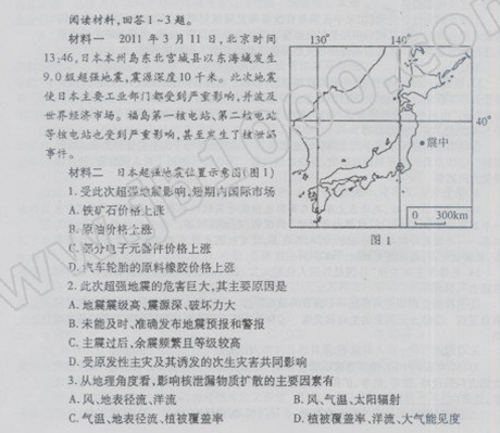 河北省石家庄市2011届高三第一次模拟考试(文综)(扫描版)