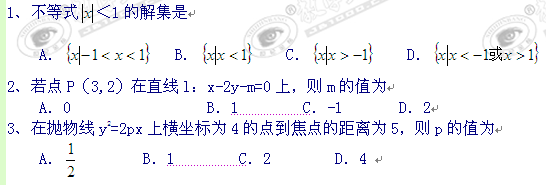 西藏拉萨中学10-11学年度高二第四次月考(数学)缺答案
