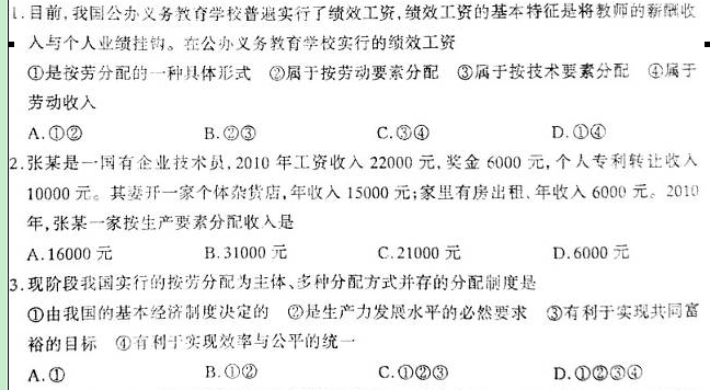 山西省太原师院附中2010-2011学年高一第二次测评试题(政治)(扫描版无答案)
