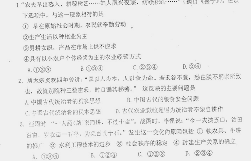 吉林省吉林十二中10-11学年高一下学期4月份阶段考试试题(历史)(扫描版)