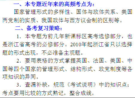 2011届新课标高中总复习专题17:国家的一般与特殊(第2轮浙江专用)