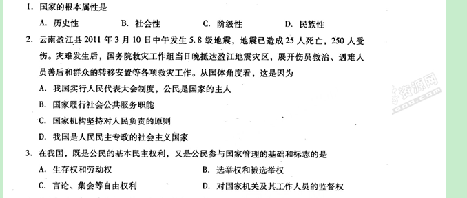 山西省康杰中学10-11学年高一下学期期中试题(政治)(扫描版)