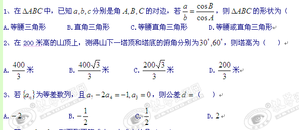 河北省唐山一中10-11学年高一下学期期中考试(数学)缺答案