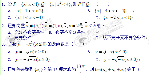 甘肃省部分普通高中2011届高三第二次联合考试(数学理)