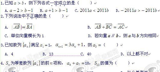 黑龙江省哈三中10-11学年高一下学期期中考试(数学)