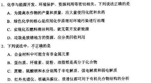 天津市南开区2011届高三二模考试(理综化学) 全国通用(扫描版)