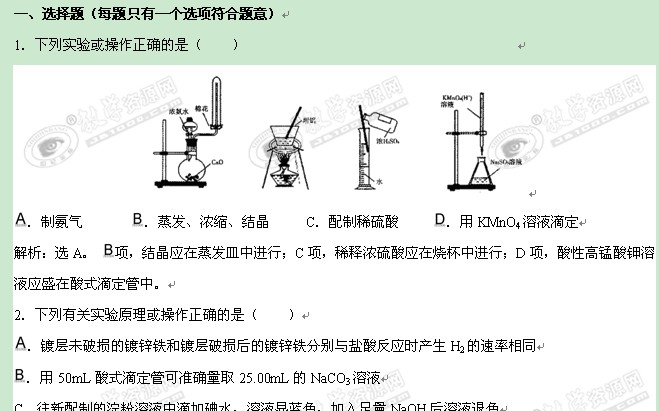 世纪金榜2011年高考化学原创预测题:专题五 化学实验基础