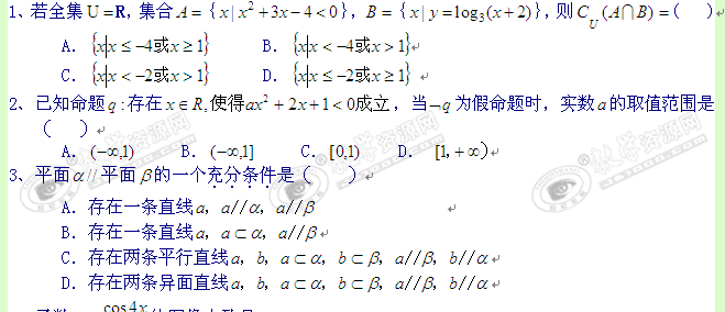 江西省重点中学协作体2011届高三下学期第三次联考(数学理)