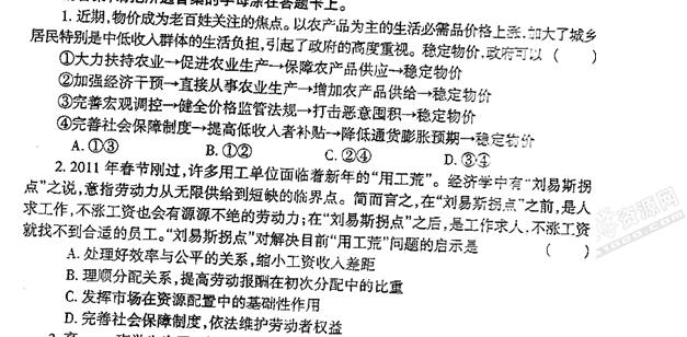 河南省濮阳市华龙区高级中学2011届高三3月摸底考试(政治)扫描版