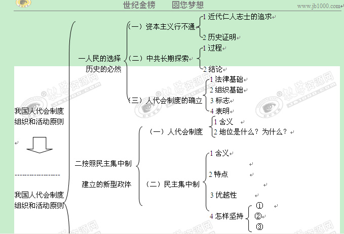 政治:专题四 民主集中制:我国人民代表大会制度的组织和活动原则 知识体系(新人教选修3)