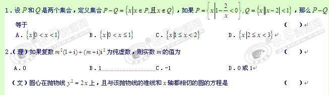 东北三省2011届高三尔雅高考特快信息卷(数学)