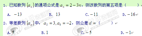 广东省番禺区石碁三中10-11学年高二学业水平测试(数学必修5)A卷