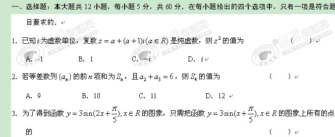 吉林省吉林一中2011届高三考前适应性训练(数学文)