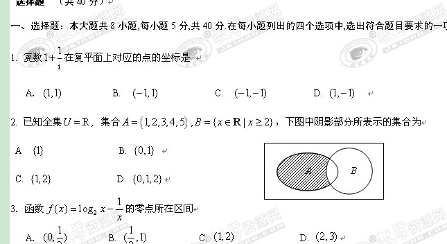 吉林省毓文中学2011届高三阶段综合测试(数学理)