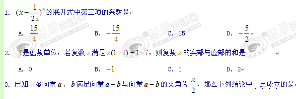 湖北省黄冈中学2011届高三最后一次适应性考试(数学理)