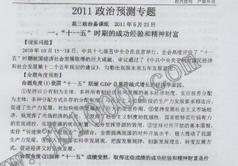 江西省师大附中2011届高考压轴卷(政治)(扫描版)