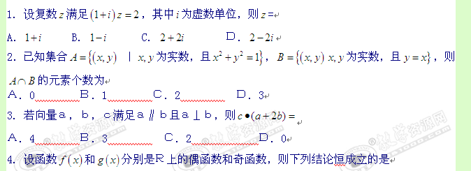2011年普通高等学校招生全国统一考试广东卷(数学理)word版有答案