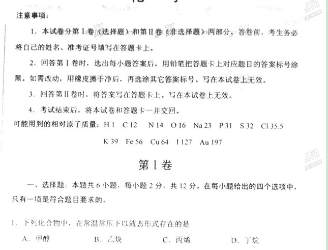2011年普通高等学校招生全国统一考试(海南卷)(化学)扫描版无答案