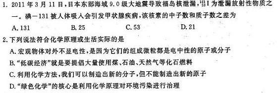 安徽省芜湖市10-11学年高一下学期模块考试(必修2)(化学)扫描版