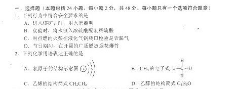 云南省2011年6月普通高中学业水平考试(化学)(扫描版无答案)
