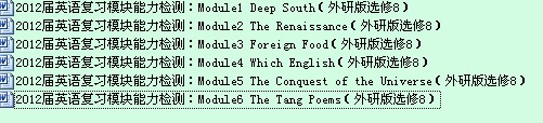 打包下载:2012届英语复习模块能力检测:Modules1-6(外研版选修8)